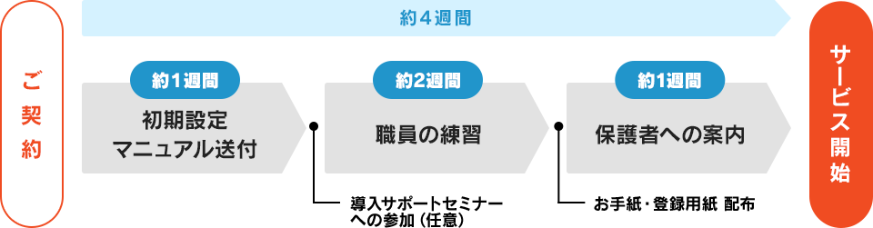 導入にあたってのサポート(操作説明など)や運用にあたってのサポート(電話、メール)も全て上記の費用内にて実施いたします。下記のサポートを無料でご提供します。