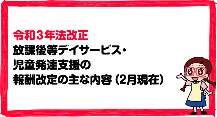 【令和3年法改正】2021年報酬改定における放課後等デイサービス・児童発達支援の報酬改定の主な内容(2月現在)