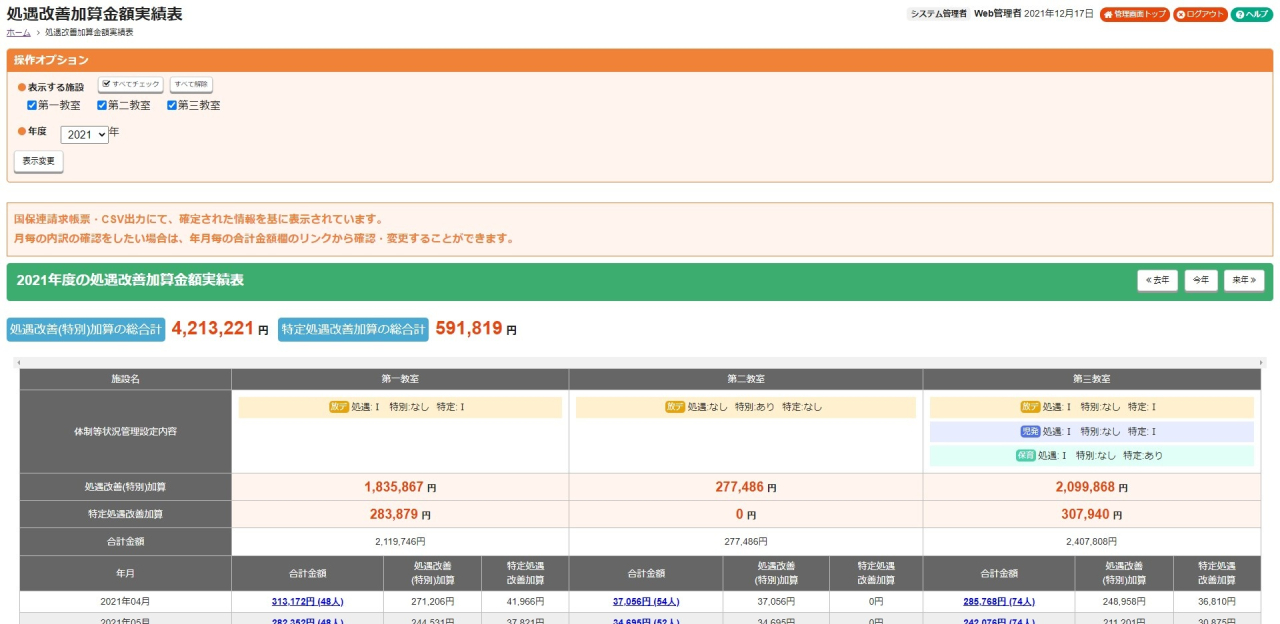 処遇改善加算金額の月単位での金額や年度合計が施設ごとにご確認頂けるようになりました