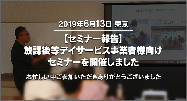 今回は去る2019年6月13日(木)に放課後等デイサービス事業者様を対象としたセミナーを東京にて開催し、大盛況のうちに終了しましたのでご報告いたします。