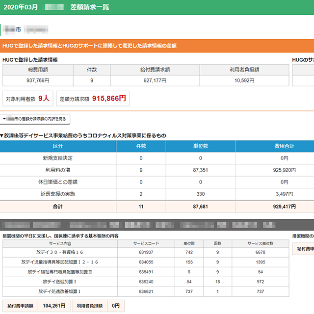 学校の一斉臨時休業により追加的に生じたサービス分に係る利用者負担、及び地方負担に係る部分の国の費用負担に関し、HUG内で変更になった請求額の差額が分かるように対応いたしましたのでお知らせします。
