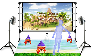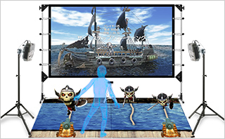 モーションセンサーや複数ディスプレイ(プロジェクター等)を利用し、ゲーム内世界に没入する感覚でプレイする療育ツールです。 自閉症やADHDの半数に併発の発達性協調運動障害(DCD)児童で集団トレーニングしにくい児童に、ゲームで体を動かせることにより、脳と体を連携させる体を作り、「座り続ける座位保持」「下駄箱で靴を履き替える」「掃除」「鉛筆で書く」などの技能定着を支援します。
